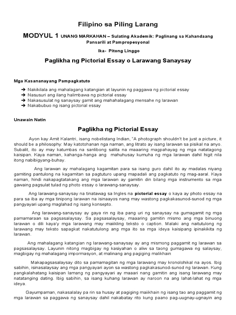 LARAWANG SANAYSAY Sa paksang ito ating aalamin kung ano nga ba ang mga katangian ng isang larawang sanaysay at ang mga halimbawa nito.