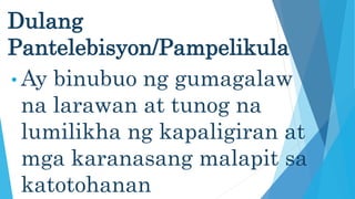 Dulang Pantelebisyon By Mhyrre Nealdyne. Gawing malinaw ang paglalahad ng paksang susulatin. Ano ang nais nitong iparating.