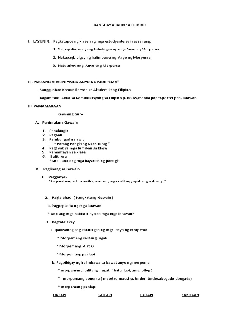 Banghay Aralin Sa Filipino Lesson Plan Pdf