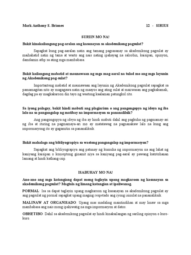 May Paninindigan Ang akademikong pagsulat ay kailangang may paninindigan. Mga layunin ng akademikong pagsulat brainly. Bakit mahalagang mabatid at maunawaan ng mga mag-aaral na tulad mo ang mga layunin ng Akademikong Pagsulat.