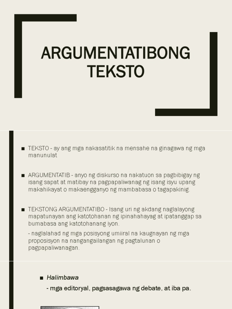 Ang mga argumento ay dapat ipakita sa pagkakasunud-sunod ng kahalagahan nang hindi nakakalimutan ang mga halimbawa na nagpapahintulot sa isang mas. Ano ang Tekstong Pampanitikan. Pumili ng paksang isusulat na angkop para sa tekstng argumentatibo.